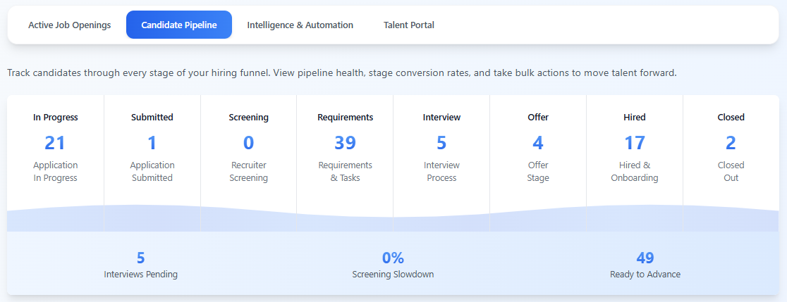 - Candidate pipeline analytics