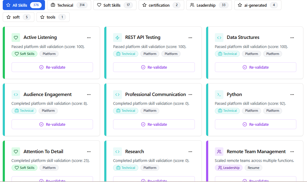 Output: Per-candidate skills scorecard and recommended learning paths.