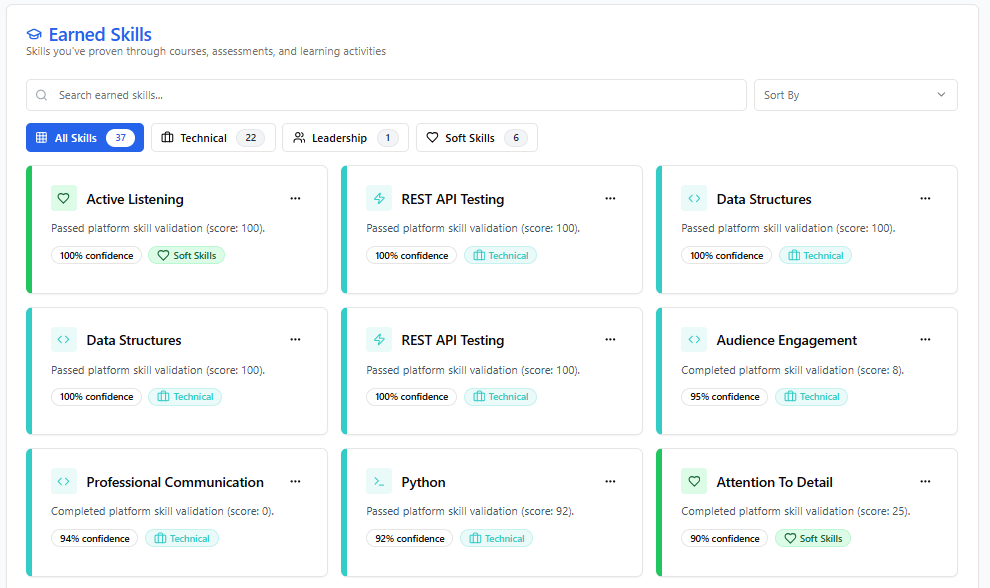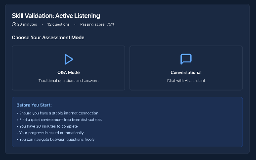 Workforce participants begin with a fast, AI-powered assessment that measures: