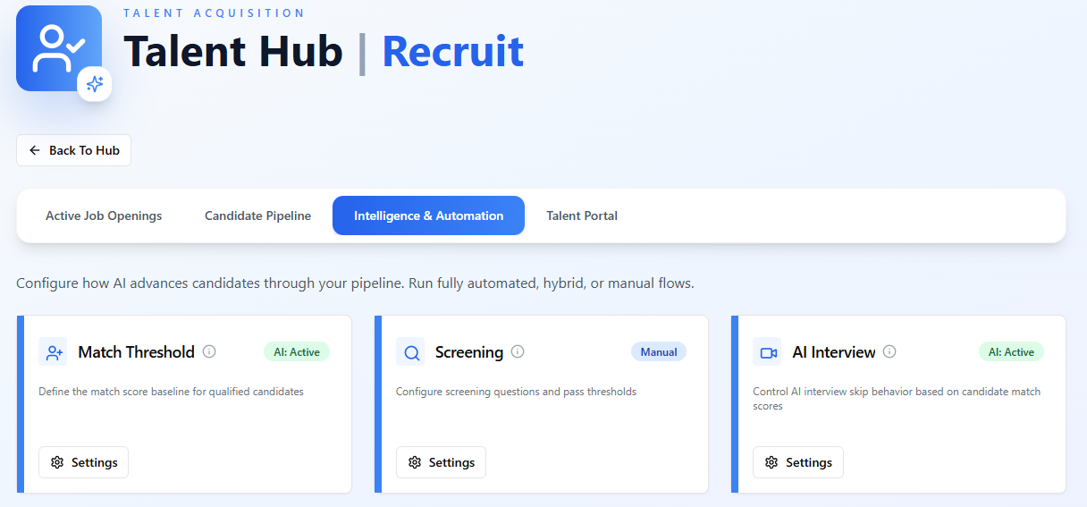 Output: Centralized engagement dashboard and interview calendar.